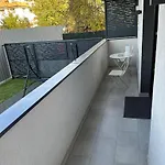 Luxury Studios & Apartments Aparthotel By Glam - Parking Free har balkong och klädloge med luftkonditionering som garanterar en bekväm vistelse. Det här boendet erbjuder gästerna hårtorkar, badlakan och handdukar i badrummet. Dessutom finns det en duschkabin och en separat toalett.